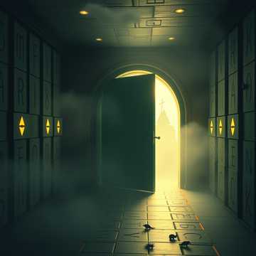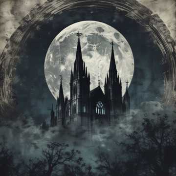 melodic symphony metal with haunting strings, complemented by choral harmonies and orchestral swells, metal, deep choirs, dark, mysterious, gothic, and powerful distorted guitars, male vocals lead