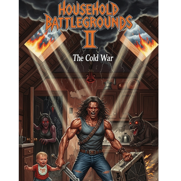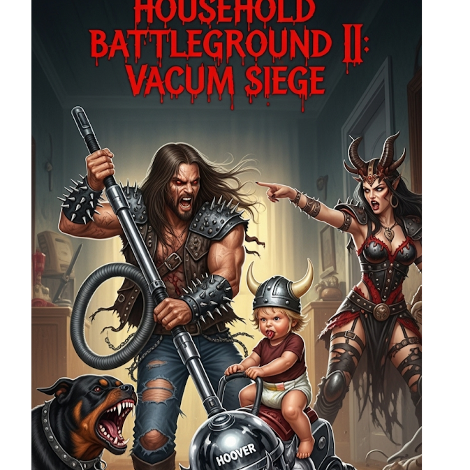 Pure 80s Manowarian true epic heavy metal at 105-115 BPM, galloping double-kick drums, crushing palm-muted rhythm guitars, soaring high-register lead guitars trading heroic melodies, thunderous bass lines that lock with the kick, and a powerful baritone warrior vocalist roaring every line like a battlefield anthem, Add a separate commanding narrator channel with deep regal-style spoken delivery over ominous reverb for intros and outros, Raw, loud, triumphant, no keyboards, no clean sections, no mercy—just steel, sweat, and household glory, intro, bridge and outro are narated, ‑[compression][distortion][noise][bad instrument][artificial][muffled][suppressed][echo][reverb][blaring][buzzing][clacking][tinny][no clean vocals][no strings][no slow tempo][no modern metalcore]