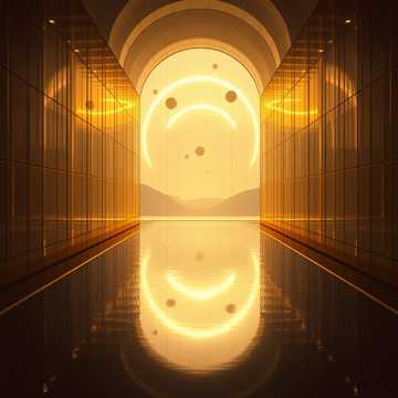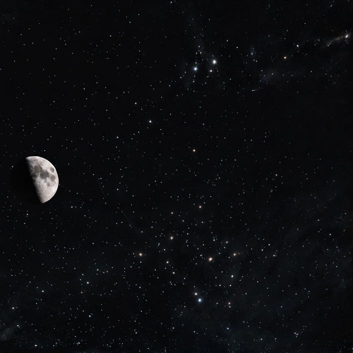 Slow-evolving ambient score with felt-piano motif, distant choir pads, and weightless strings; very gradual harmonic shifts, soft pulsating synths for a sense of motion, Gentle hook emerges like moonrise, suspenseful pedal tones sustain underneath, resolving into a quiet, luminous payoff that lingers in reverb, slow, gentle