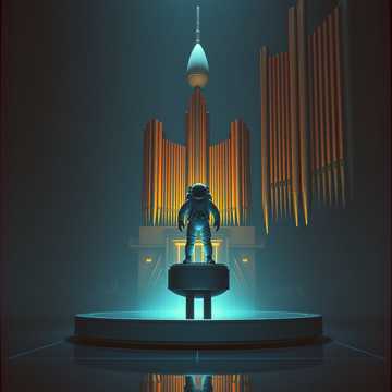 Cinematic Zimmer-esque build with vast pipe organ as the spine, male vocals as a solitary human voice, delicate arpeggiated strings and synths pulsing underneath, Low brass swells and distant taiko-style hits shape the countdown, then everything blooms into a towering organ-led climax with insistent arps and a wide, shimmering mix that feels like standing under a rocket at T‑0, soundtrack