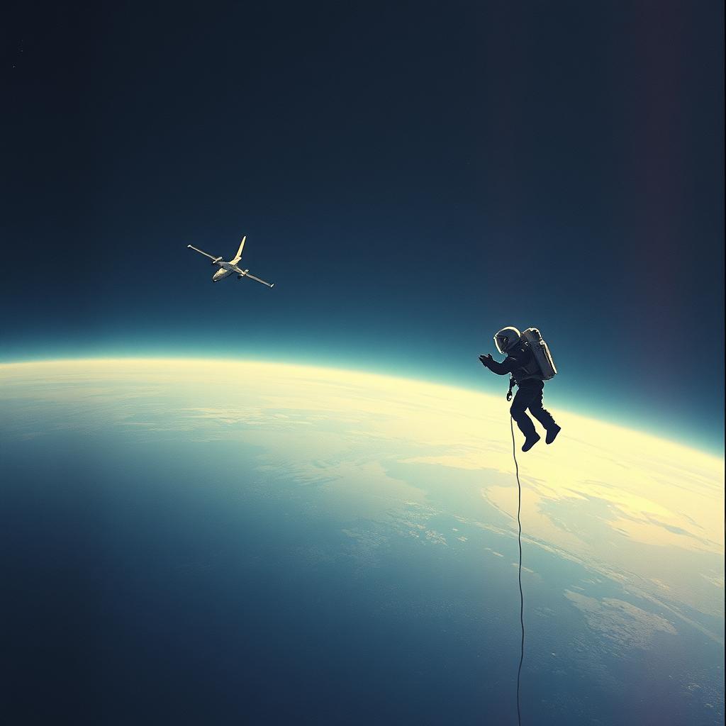 Weightless ambient score with airy pads, distant choirs, and soft mallet tones; slow, swelling chords that bloom like sunrise over a planet, Gentle pulsing bass for heartbeat tension, breathy synth leads tracing the melody like a suit’s tiny maneuvers, Reverb-soaked piano notes glimmer sparsely, with strings entering midway to lift the emotion, then dissolving back into hushed, spacious stillness, soundtrack, soothing