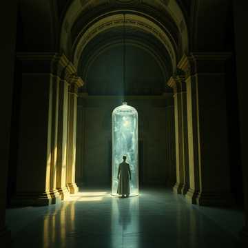 Instrumental ambient music with a mysterious and floating atmosphere, Soft piano melody, subtle synth textures, cinematic mood, slow tempo (around 65 BPM), no vocals, Inspired by philosophical and contemplative themes