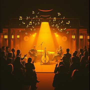 Koto music, shakuhachi music, shamisen music, gagaku, Celtic acoustic, Celtic fusion, Celtic, tin whistle, Irish flute, fiddle, bagpipes, Celtic harp, mandolin, bodhrán, koto, nohkan, shakuhachi, shamisen, bells, taiko, shinobue, Shō, Yashaku-shō, Ryū-bue, Noh-kan, Ōdaiko, Kotsuzumi, Tsuri-daiko, Mokugyo, Hyōshigi, Syncopation, Acoustic, Arpeggio, Bittersweet, Joyful, Passionate, Playful, Exhilarating, Bpm100, [Mood: Happy], [Image: Sky], [Melody: Gentle], Instruments take turns playing like a relay, their tones intertwining like a lively conversation, Drums powerfully support the rhythm, while wind instruments play with innocent abandon, Fiddles, shakuhachi, and koto play fiercely, An innocent and joyful concert, Midway, it descends into chaotic brawl-like chaos, but after a moment of silence with only drums, the finale sees all instruments harmonizing in dynamic arpeggios