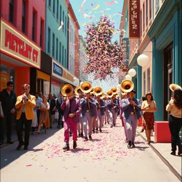 A bright, fun Dixieland Jazz gospel anthem titled “Scatter Sunshine (Dixieland Revival Anthem)” 112–116 BPM in Bb major, Full New Orleans brass band with trumpets, trombone, clarinet, tuba, banjo, piano, snare drum, tambourine, and gospel choir, The tone should be joyful, soulful, and full of energy, Include lively brass riffs (trumpets: Da-da, da-da, da-da-da-da!), swinging drums, call-and-response vocals, and a big final parade-style ending, The song celebrates spreading love and kindness, blending gospel soul with Dixieland joy, Dixieland jazz, gospel blues, New Orleans brass, swing gospel, gospel choir, joyful, upbeat, parade, revival, sunshine, kindness, faith, service, Christian jazz, second line, Dixieland Jazz / New Orleans Gospel Swing, Bb Major (classic brass key), Mood: Fun, bright, upbeat, full of laughter, joy, and gratitude, Trumpets, clarinet, trombone, tuba (or upright bass), banjo, piano, tambourine, handclaps, full gospel choir, snare & kick (brushed swing beat)