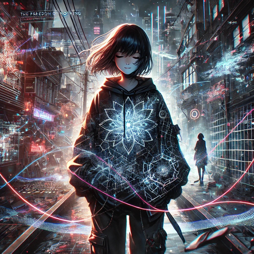 Melodic Synthcore-infused industrial metal, melodic synths, screamed and clean vocals, glitchy breakdowns, heavy distortion, empowering nihilism, raw emotional intensity, fast-paced