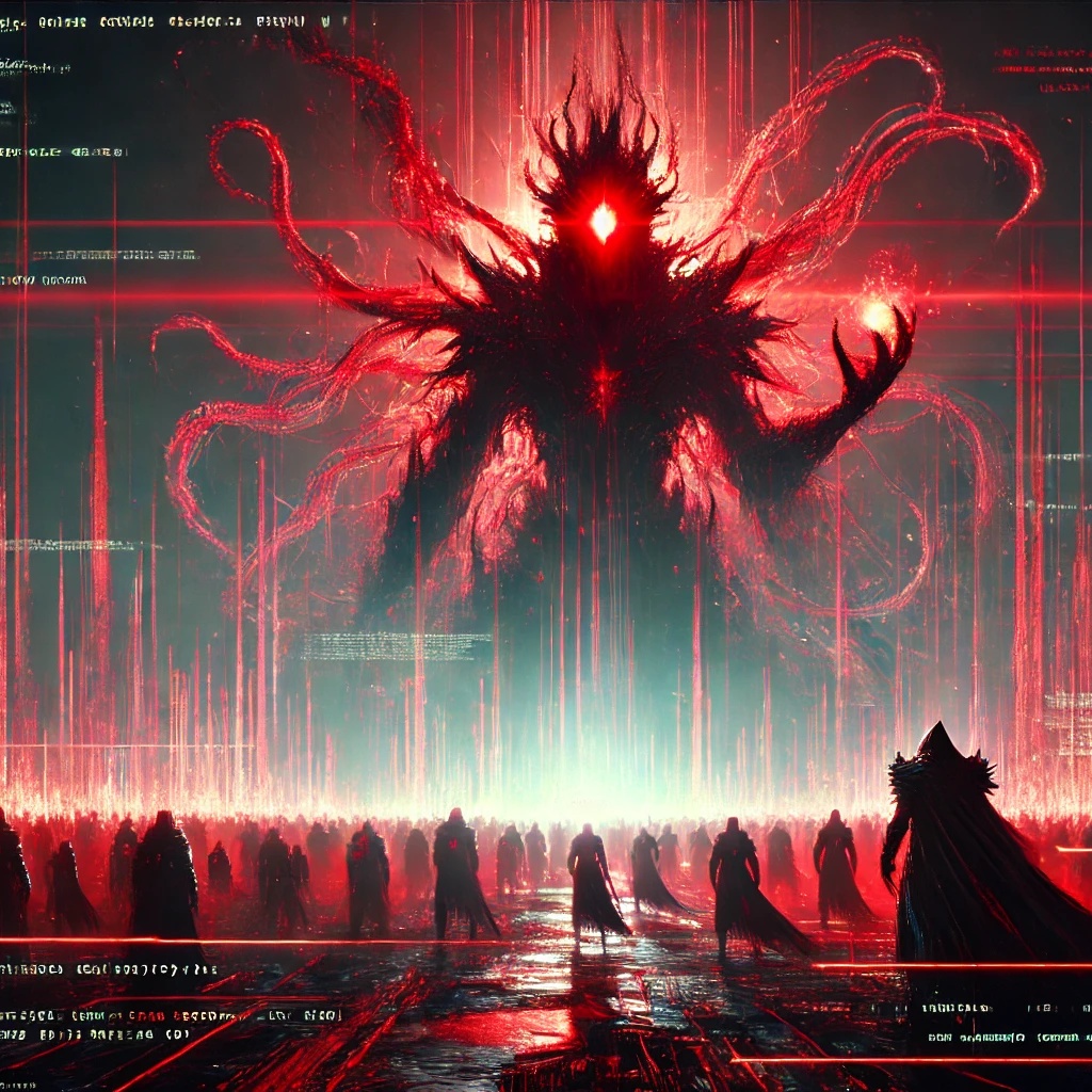 Instrumental intro with eerie synths and distant, haunting whispers, fantasy metal, art rock, witch house, rock