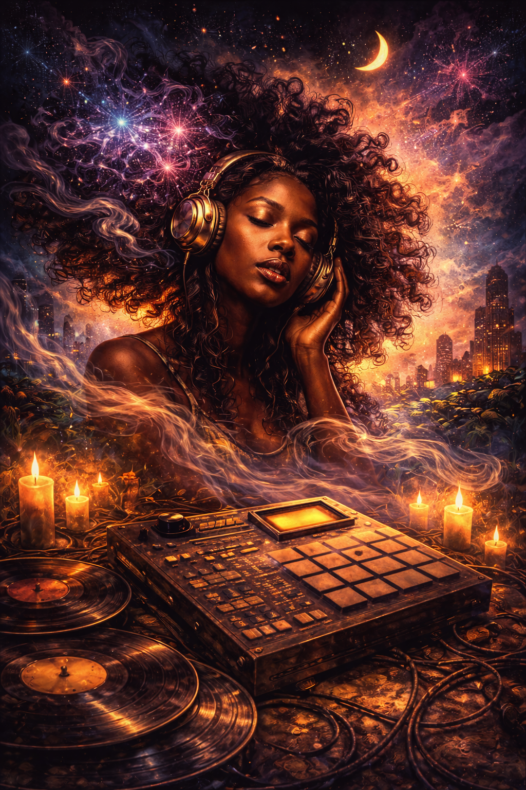 In a dim, smoke-filled studio, a producer reflects on past experiments, letting the energy of four fresh, dope beat ideas fuse into a new creation, The inspirations merge perfectly, forming the backbone of a bold, hypnotic boom bap journey, Create a hard-hitting old-school boom bap instrumental with thick, punchy MPC-style kicks, sharp snappy snares, dusty swung hi-hats, and a deep head-nod pocket, Layer chopped jazz samples, SP-1200 and MPC2000XL flips, rugged vinyl loops, cinematic stabs, and gritty melodic fragments treated like worn textures, Keep the bass deep, solid, and locked with the drums, Add subtle vinyl crackle, tape saturation, light scratches, and short FX accents, Rhythm is raw, phat, underground, cinematic, unstoppable, paying homage to the golden-era boom bap while transforming the old inspirations into a fresh, mad-dope extended long remix, This sound is the ultimate tribute to the dusty journey to hip hop's true roots