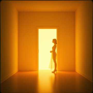 Melodic symphonic track with a mystical, otherworldly atmosphere, Tempo slow (60–75 BPM), minor key with modal, ancient-sounding harmonies, Orchestration led by soft evolving strings, low sustained pads, subtle drones, and distant choir textures that feel like breath rather than voices, Occasional solo female choir notes, long and clear, emerging like stars in darkness, Metal elements are minimal and restrained: clean guitars with reverb and delay, no aggression, no riffs, only long sustained tones, Percussion is sparse and ritualistic: deep frame drums, soft toms, distant low hits like a heartbeat, Bass is warm and grounding, Vocals: female lead, calm, centered, intimate, almost spoken-sung, No operatic excess, no drama, The voice should feel like guidance, not command, Mood: entering the Otherworld, weightless, timeless, safe but profound, A sense of vast dark space with slowly moving points of light, Dynamics: verses very sparse and intimate, chorus opens gentl