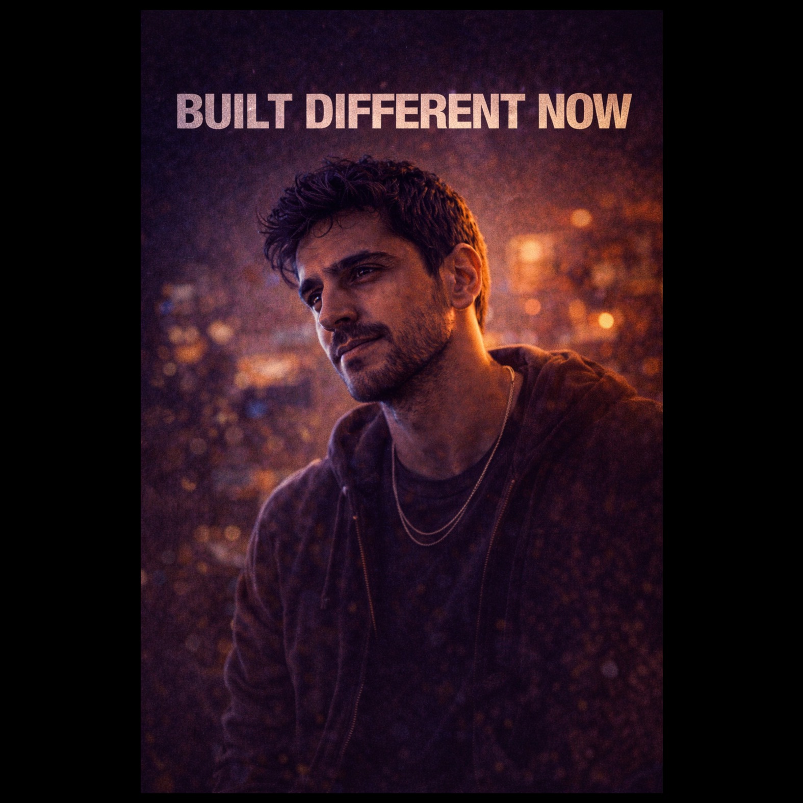 Groove-driven hip-hop soul with steady mid-tempo lift and subtle harmonic warmth; intimate close-mic male vocal with confident but softened melodic phrasing and layered hook harmonies; warm bass groove, tight snare and kick pocket, richer Rhodes chords with gentle upper-register accents, minimal percussive texture; wide stereo image, clean vocal presence, controlled low-end, smooth open highs; builds from grounded verse to fuller hook stacks → bridge slightly strips rhythm → final chorus blooms wider; ends steady, hopeful, and forward-moving, ‑heavy trap hats, ‑distortion, ‑cinematic strings, ‑choir layers