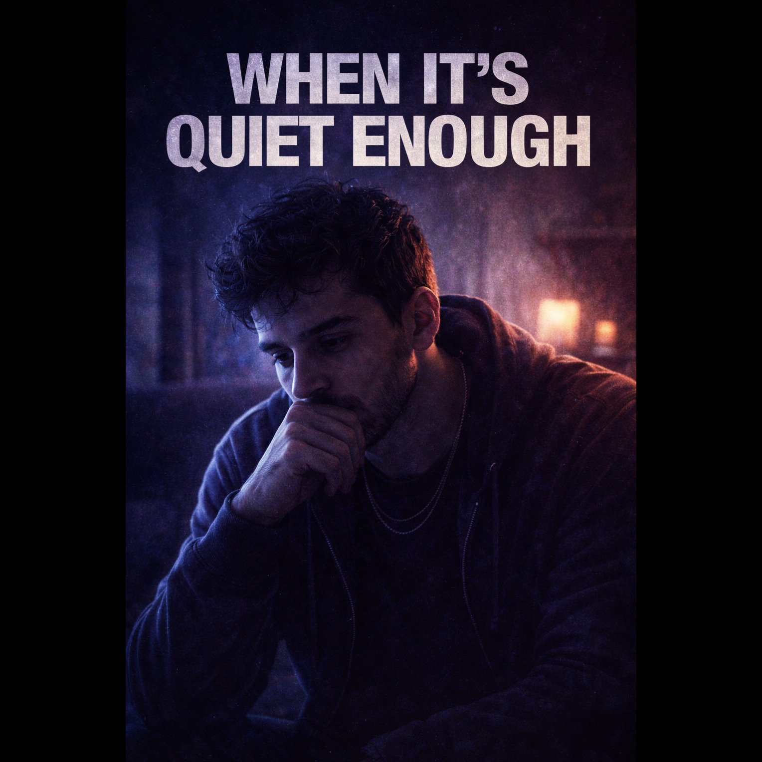 Groove-driven hip-hop soul with subtle harmonic warmth and late-night clarity; intimate close-mic male vocal with confident melodic phrasing and fuller layered hook stacks; warm electric bass steady but less dominant, tight metronomic drums with rimshot snap, richer Rhodes chords with soft upper-register accents, light ambient pad for warmth; wide stereo image, clean vocal presence, tight low-end, smooth polished highs; starts grounded and focused → builds harmonic warmth in pre-chorus → bridge strips drums for emotional clarity → final chorus blooms melodically; ends centered, accepting, quietly powerful, ‑bright trap hats, ‑heavy distortion, ‑cinematic strings, ‑gospel choirs