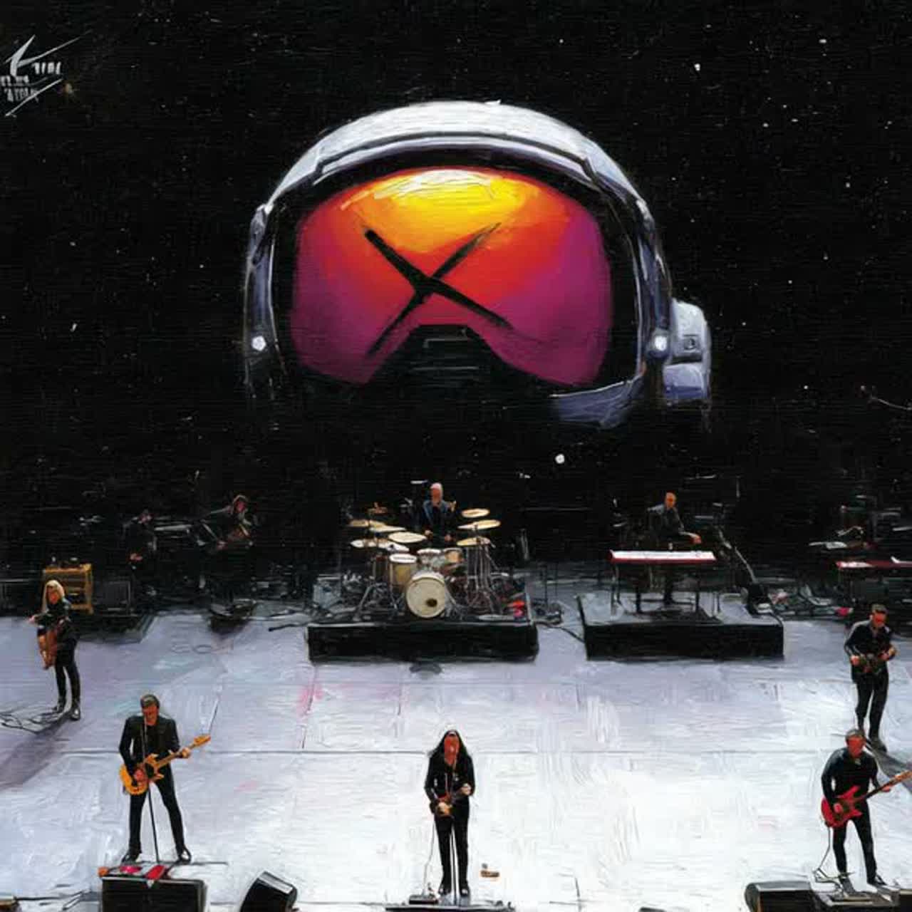 Arena rock revival live performance, 138 BPM driving stadium energy, Confident gritty male lead vocals with charismatic arena presence, shifting from storytelling verses to explosive chant-leading choruses encouraging crowd participation, Crunchy overdriven rhythm guitars with bright melodic lead lines and soaring bends, pumping bass groove, thunderous arena drums with big tom fills and snare cracks, shimmering analog synth pads and Hammond-style organ layers adding 80s grandeur, Massive stadium acoustics with wide reverb and festival atmosphere, Crowd: roaring intro welcome, rhythmic clapping during verses, thousands chanting chorus lines, stomping and shouting “HEY!” responses with raised fists, High-energy live precision with spontaneous crowd interaction, guitar harmonics and melodic solo, Builds from anticipation intro to full arena anthem explosion, ‑Trap, ‑Drill, ‑Reggaeton, ‑Death-Metal, ‑Classical-Orchestral
