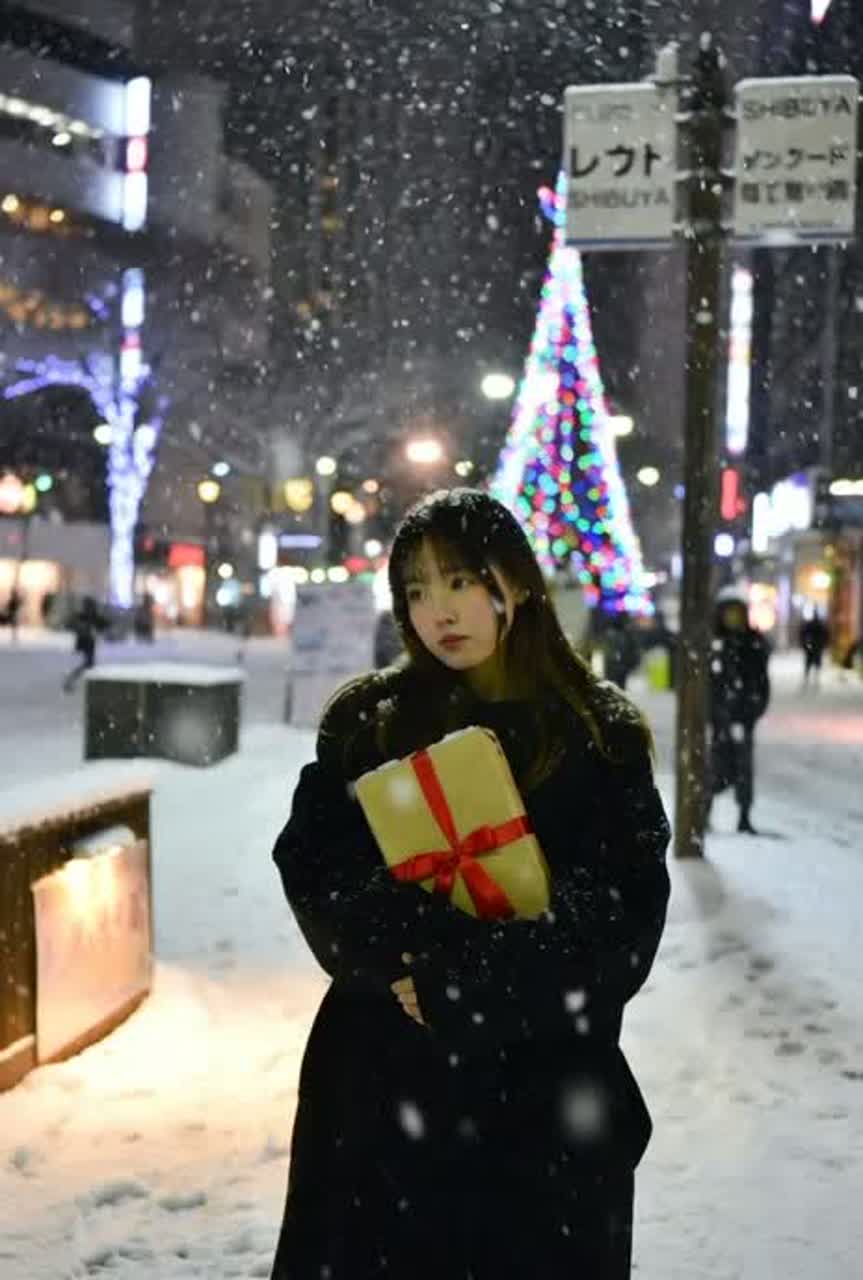1980s Japanese city pop christmas ballad, 92bpm mid-tempo swing, warm analog sound, gentle Fender Rhodes electric piano with arpeggio, soft brushed drums with light swing feel, deep walking fretless bass, lush real orchestral strings, subtle brass pads, delicate sleigh bells and glockenspiel only in chorus, crystal-clear 80s Japanese production, tender breathy male Japanese vocal with emotional high falsetto harmony, nostalgic snowy night city feeling, slight reverb like recording in a large hall, exact vibe and arrangement of classic Japanese Christmas song from 1987