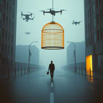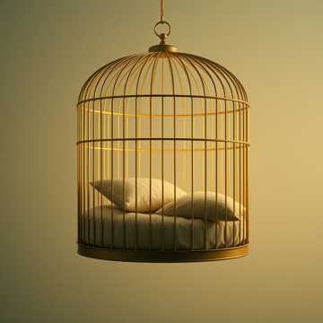 Melancholic Dream Pop, Ambient Electronic, ethereal synth pads, subtle industrial undertones, soothing female vocals, calming yet unsettling, german lyrics, themes of dependency, lost purpose, and gilded comfort, 90bpm