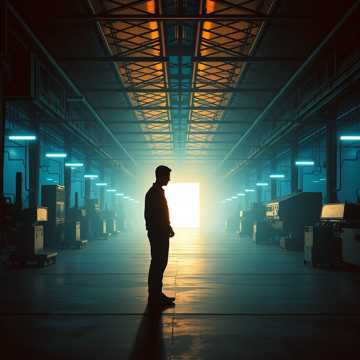 Dystopian Ambient Electronic, melancholic synth pads, slow industrial pulse, robotic vocal samples, male vocals (resigned, reflective tone), german lyrics, themes of automation, job displacement, loss of purpose, and technological obsolescence, 85bpm