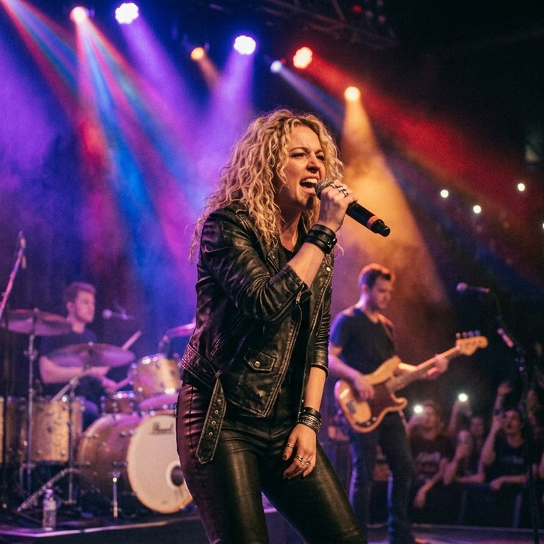 Modern pop rock, 120 BPM, anthemic and emotional, crunchy electric guitars, driving bass guitar, powerful live drums with fills, passionate female vocals with soaring delivery, stadium-ready choruses, dynamic verses to explosive hooks, 2020s rock production with polished punch