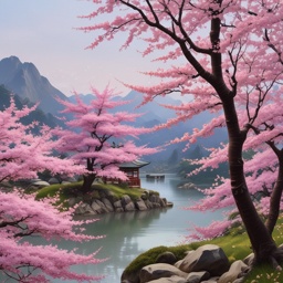 Serenity, Wafū, Japanese shrine, Sakura, Shakuhachi, Pipa, gentle breeze