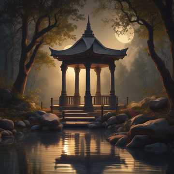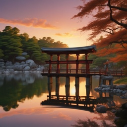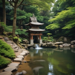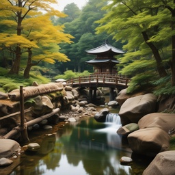 Serenity, Wafū, Japanese shrine, Small bridge, gentle water flow, Shakuhachi, Pipa