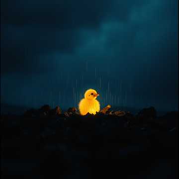 cinematic fantasy track that begins radiant and heavenly, transforming into a thunderstorm of sorrow; soft choirs, strings, rain ambience, and deep drums; evokes an angel falling to earth and becoming a dragonborn infant in a storm; tone sacred yet tragic, lasting about 3 minutes 40 seconds
