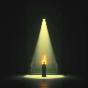 The divine sound fades, replaced by calm, A faint heartbeat returns, Wind blows through the open temple — morning light