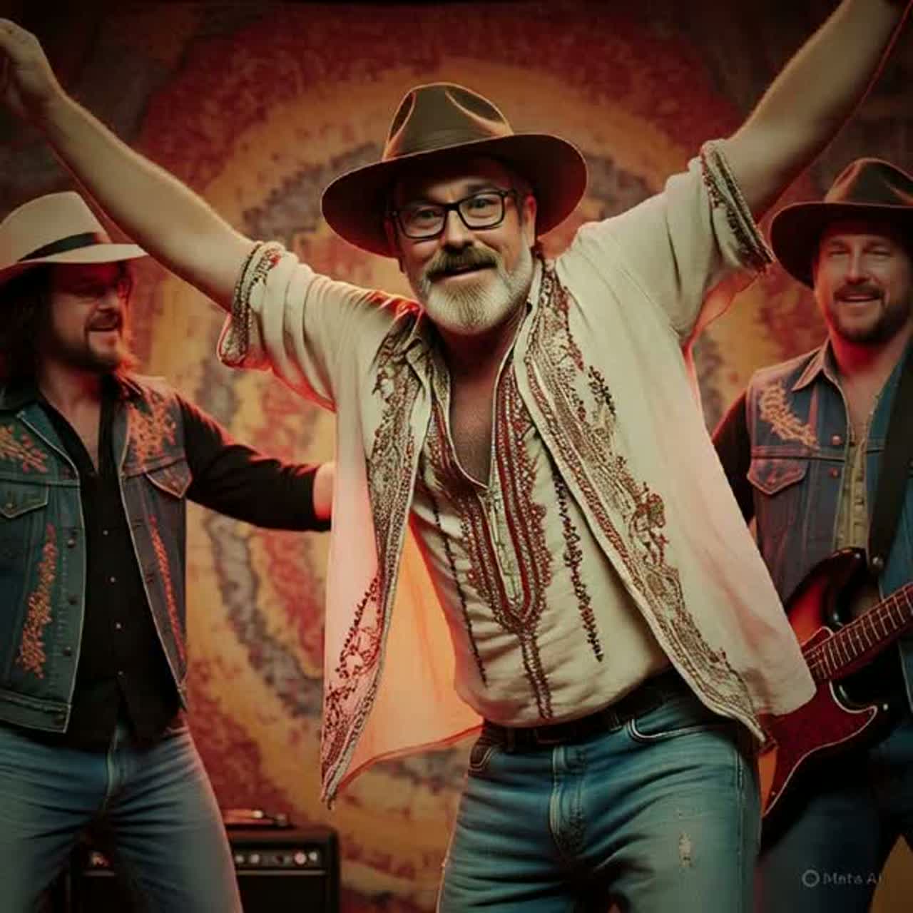 Funk, funk, funk, funk, **bongos, coubtry fiddle, funky slap bass, percussion, male vocals