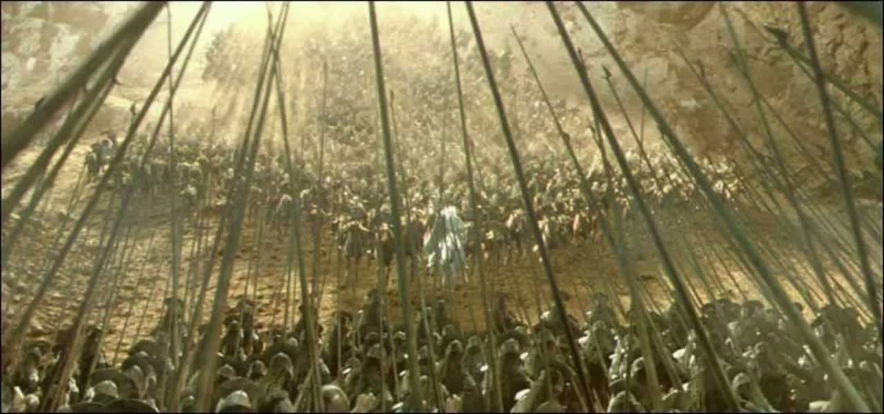 Non-English are soldiers responding in chant
