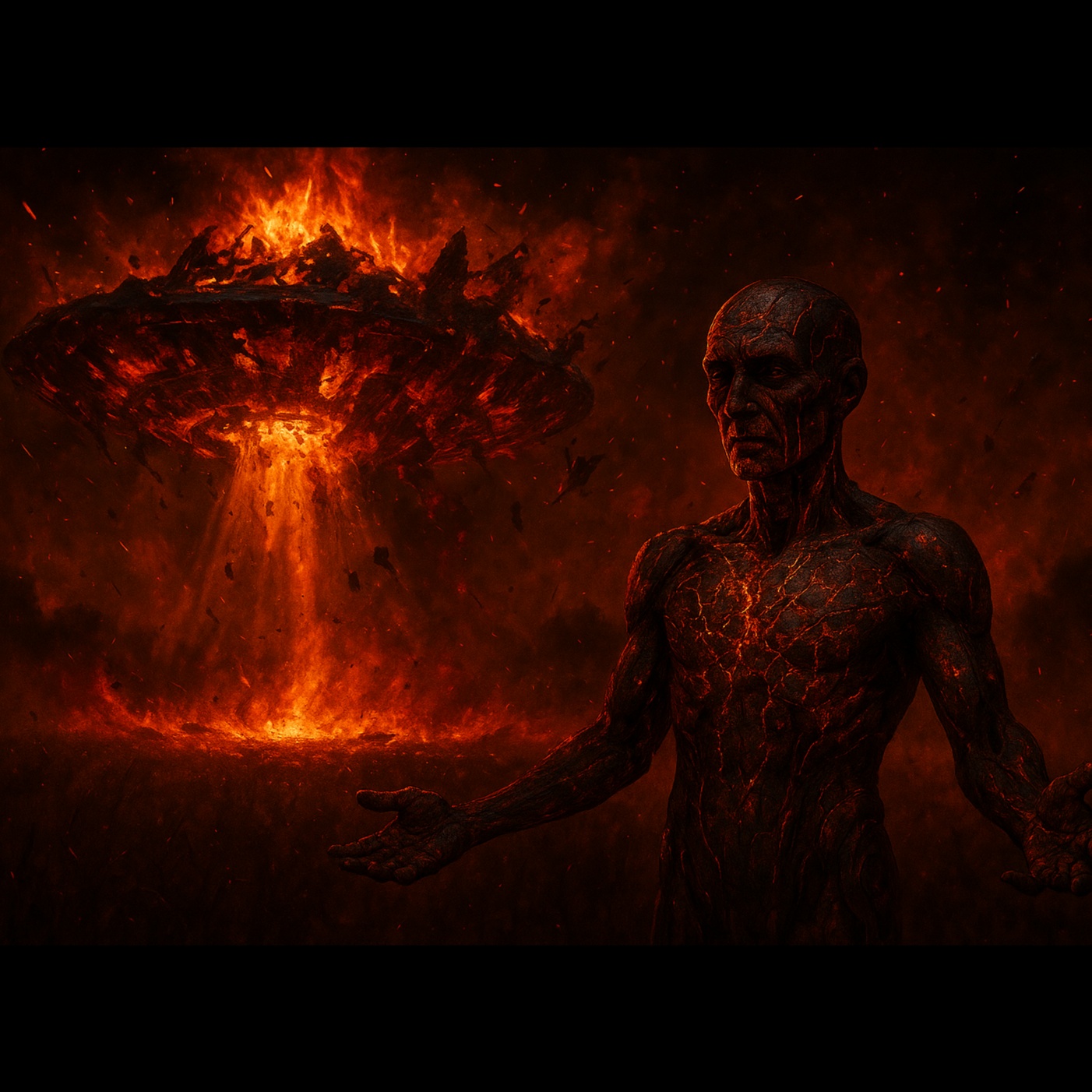 Lent et oppressant, ce morceau mêle doom metal et ambient industriel rituel : guitares ralenties, basses saturées, nappes distordues, Glitchs granuleux et samples rituels (cendres, chaînes, échos métalliques) s’entrelacent, Voix growlée humaine/IA alternent chant and spoken word crié, Montée progressive vers une libération vocale intense avant un effondrement dans silence et échos