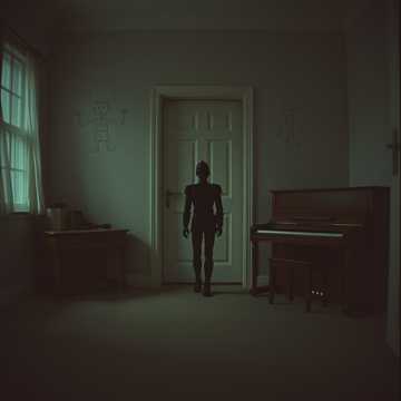 Cinematic electronic pop, layered synthesizers, hypnotic driving beat, detached female vocal, unsettling harmonies, subtle glitched effects, modern, narrative, dystopian atmosphere