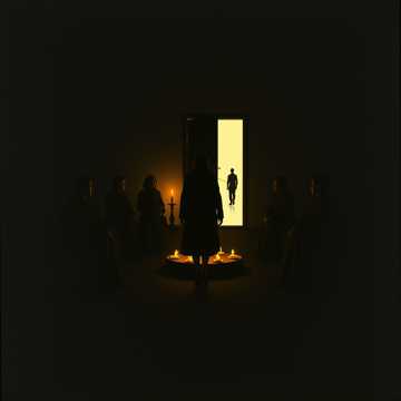 Ethereal dark folk, haunting harmonies, acoustic guitar, atmospheric synth pads, slowly building percussion, hypnotic, slightly unnerving, male and female duet vocals, cult chanting