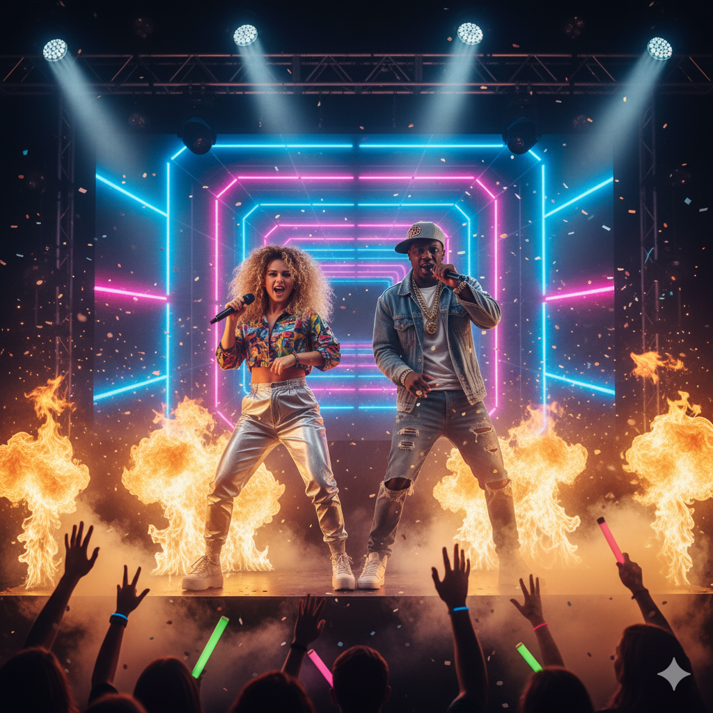 Create an energetic song blending modern doo-wop, afrobeat, and Indian music styles, Combine doo-wop’s harmonic vocals with afrobeat rhythms, Add traditional Indian instruments (tabla, sitar, etc, ) and electronic elements, The melody and rhythm should be strong, danceable, and create an atmosphere that feels both nostalgic and modern