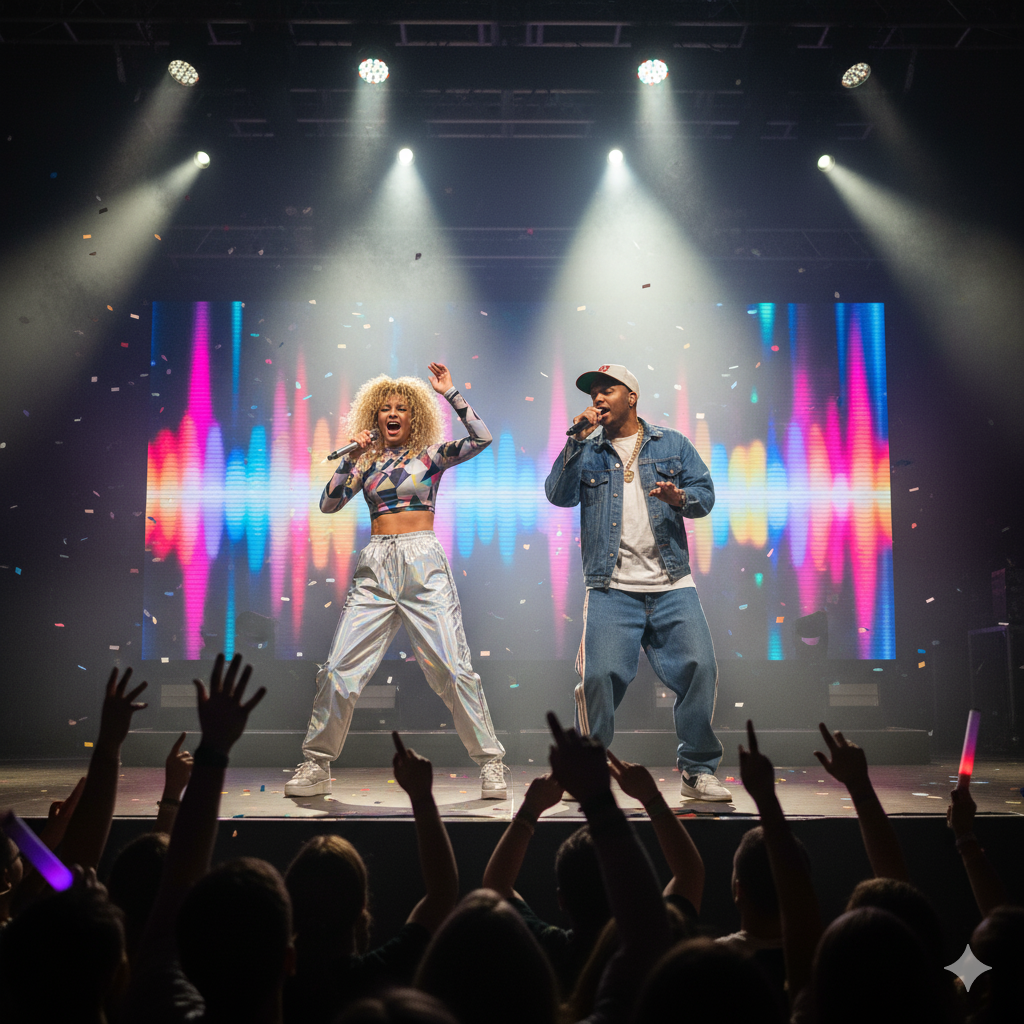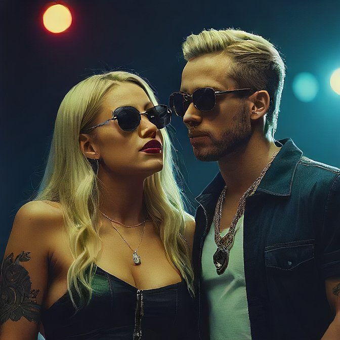 Classic 90s Eurodance energy with a driving four-on-the-floor kick, crisp hi-hats, and bold syncopated synth bass, Verses feature spirited rap over looping, pulsing beats, while sweeping string pads soar in the chorus, Upbeat stabs, arpeggiators, and sensual synth flourishes complete the texture, 140 BPM