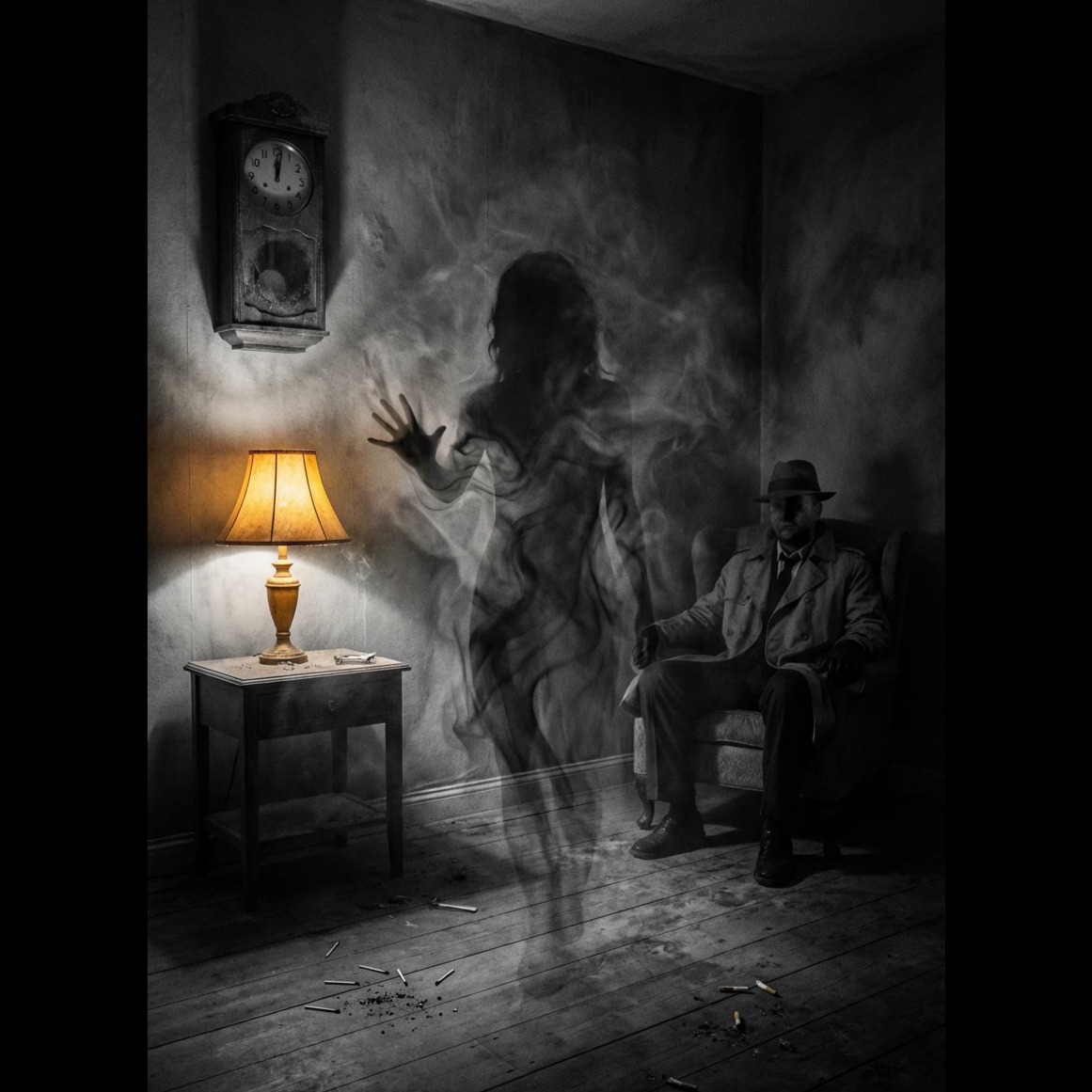 Vocal Style: Male baritone voice, clear and emotional, close-mic'd, with a sense of intimacy and sorrow, On the word "Delirium" use a subtle echo/distortion effect, Key Elements: