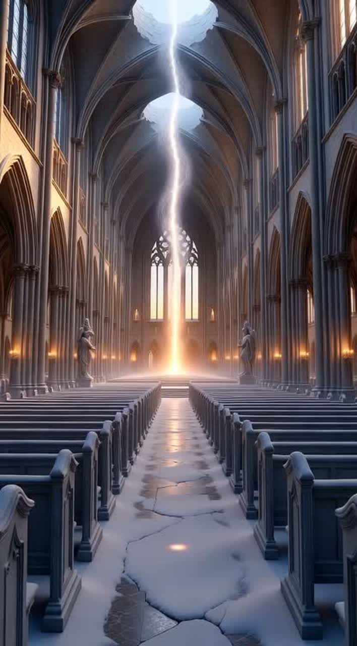 A sacred, wordless motet for the cosmos, No text – only multi-layered female voices (soprano and alto) in pure, sonorous harmonies, floating above a bed of analog synthesizers and distant pipe organs, Recorded in a vast, empty cathedral at dawn: natural reverberation grows like breath, the stone walls hum with memories, Tempo: none, Pulse: slow, tectonic – like the Earth's rotation, Texture: luminous, weightless, eternal, A single harp and church organ enter halfway through – not to lead, but to weep in slow glissandi, No drums, No rhythm, Only rising overtones, silence between notes, and the delicate crackle of frozen air, Mood: awe-inspiring, serene, ancient, yet futuristic, This is not music to be listened to – it is a frequency to inhabit, A vibration older than time, offered not as a song but as silence given to sound