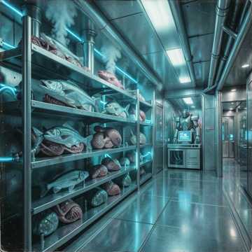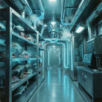 Grotesque Aquatic Industrial, Wet Flesh Grinding Beats, Deep Sea Monster Growls, Sludge-heavy Synth, 80s Horror Anime Soundtrack, Metallic Scraping, Unsettling Choral Chants, High-Pressure Steam Hiss