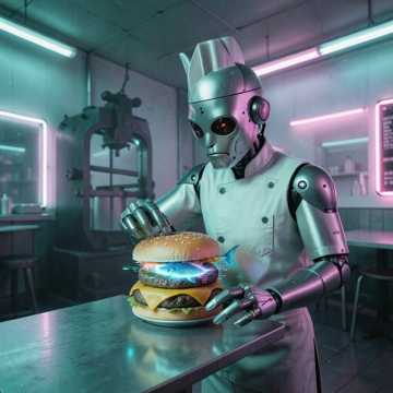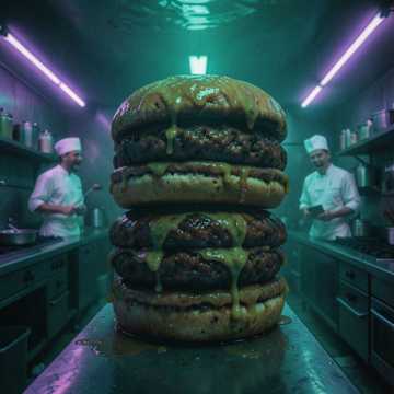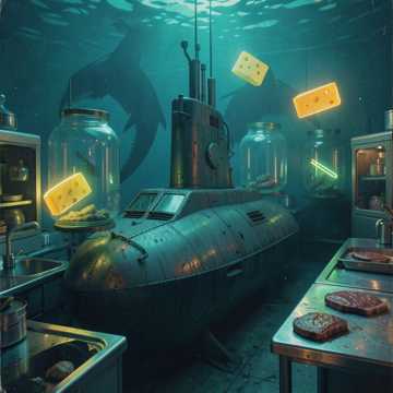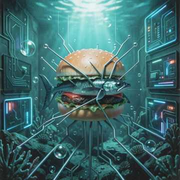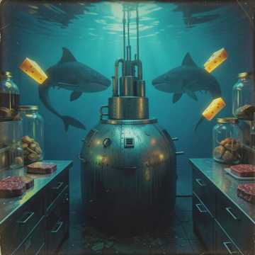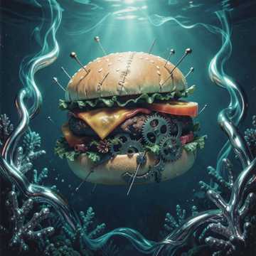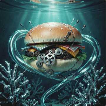 Wet Slapping Sounds, Grotesque Industrial Beats, Distorted Toy Piano, Occasional Fish Flapping Noise, Sinister Gurgling Bass, 80s Cheap Synth Pad, Surreal Dark Comedy Soundtrack, Muffled Laughter