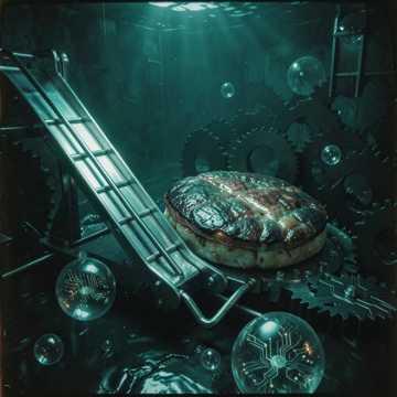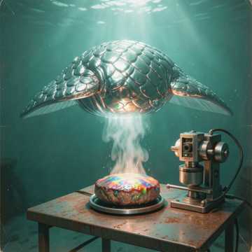 Grotesque Underwater Waltz, Slime-drenched Industrial Beats, Wet Meat Slapping Percussion, Ancient Eerie Synth, Distorted 80s Anime OST, Gurgling Underwater Vocals, Dark Surreal Comedy, Squishing Sound Effects