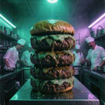 Grotesque Industrial Opera, Heavy Metallic Clanging, Wet Meat Slapping Percussion, Ancient deep-sea drone, Sludge-heavy Synth, Metallic Scraping Sounds, Unsettling Choral Chants, 80s Cyberpunk OST, High-Pressure Steam Hiss, Clinical Rhythmic Beeps, Echoing Maniacal Laughter