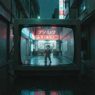 80s Lo-fi Anime OST, Creepy Synth-Pop, Analog Distortion, Off-key Melodies, Gritty Industrial Beat, Sinister Male Vocals, Parody Comedy-Horror, Reverb-soaked Whispers
