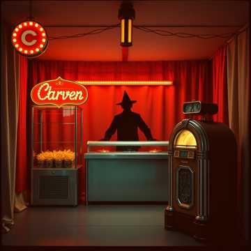 Dark Carnival Waltz, 1950s Distorted Lounge Pop, Eerie Music Box Intro, Creepy Male Whispers, Glitchy Circus Organ, Lo-fi Horror Atmosphere, Slow and Unsettling Tempo, Cinematic Suspense