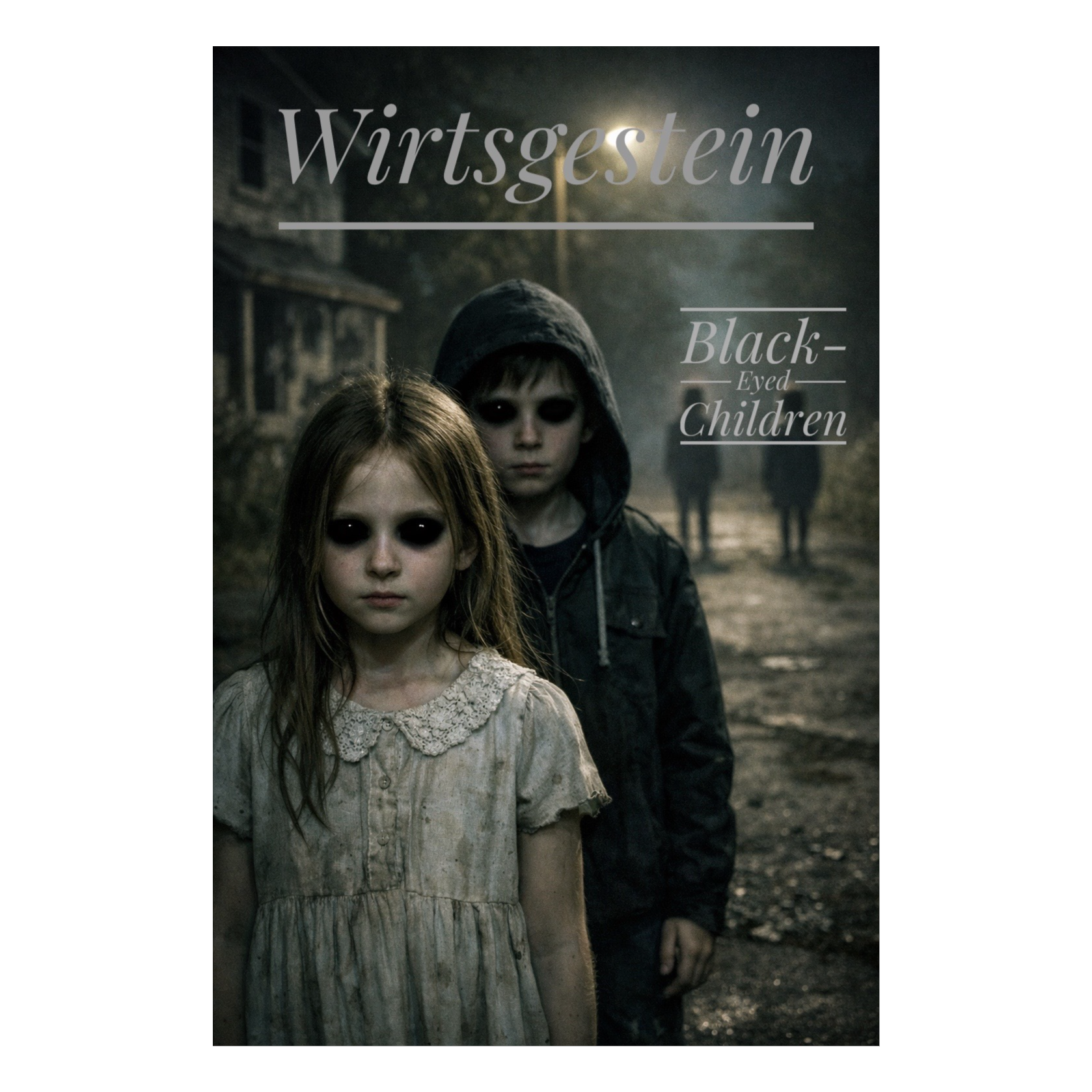 In e minor, 68–74 BPM, 4/4: Atmospheric intro with choral synth pads, distant reverbed and reversed children’s voices, deep sub drone, Verses use drawn-out guitars, pulsing bass, sparse industrial kicks; male lead deep and calm, female breaths as backing, Pre-chorus swells as kid choir grows and filters open, Chorus: wide chords, full drums, dark organ synths, octave lead duet, kids’ choir in ominous minor thirds, Instrumental hook: synth melody and choir stabs, Bridge: only children’s voices with heartbeat bass—then a crushing drop, Final double chorus is massive with extra harmonies, Outro features distorted children's laughter decaying in reverb, Vibe: sacred, alluring, apocalyptic