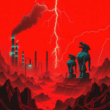 metal, heavy metal, cyber thrash, distorted guitars, rapid double-kick drums, and industrial synth textures, male vocals scream with guttural intensity, layered with robotic vocal effects for a cybernetic edge, relentless energy, breakneck tempo, and apocalyptic tone