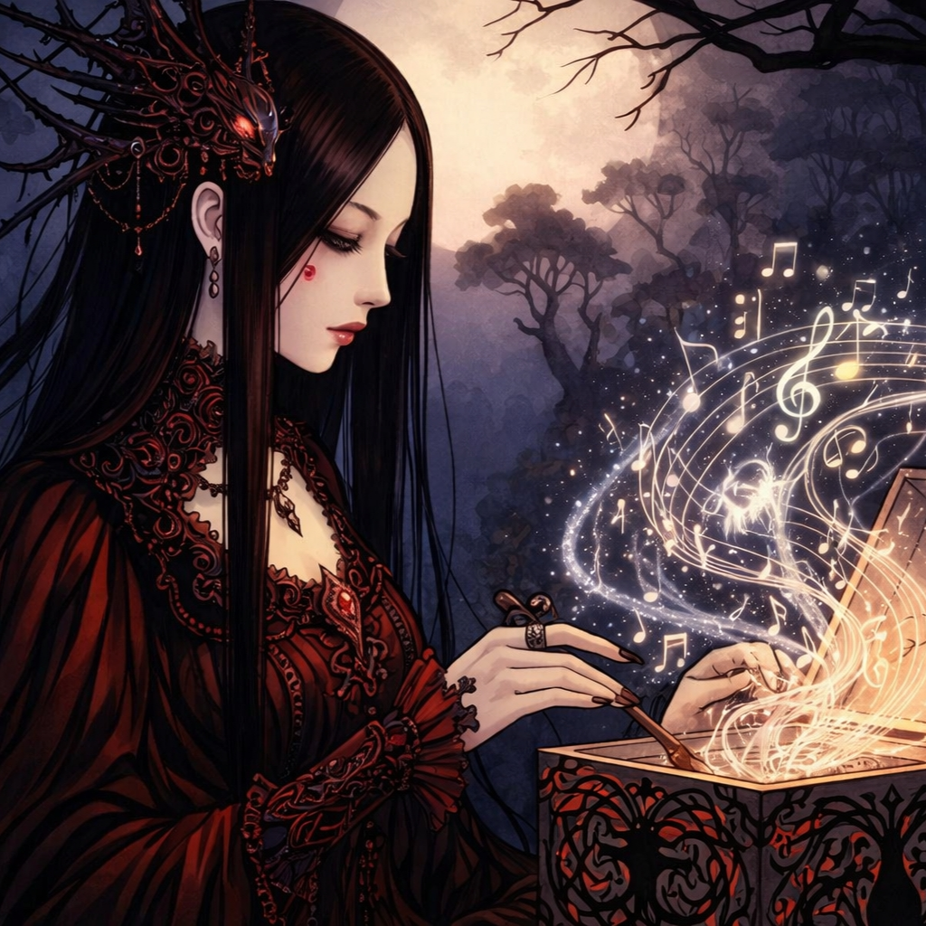 The track opens with a haunting music box and twinkling glockenspiel, setting a gothic waltz rhythm, Tubular bells underline a trap metal beat as distorted guitars and hard 808s slam in, Industrial textures and deep bass anchor intense grooves, Verses feature a tapestry of female vocals—murmurs and whispers traded with breathy, languid lines, shifting into emotional, raw falsettos with quirks and scat, Catchy hooks land amid lush orchestral strings and rock drive, each chorus swelling in cinematic power