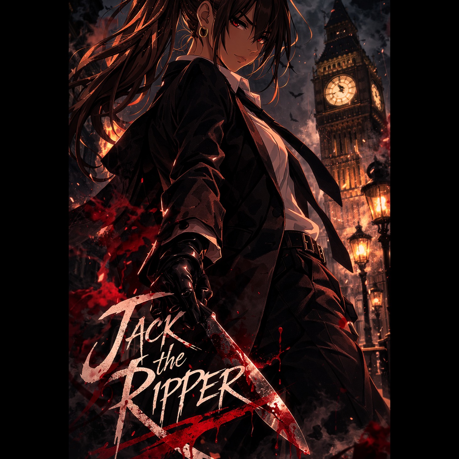 Dark female-vocal grunge rock song, about 3 minutes long, Use a loud–quiet–loud dynamic structure typical of 90s alternative grunge rock, The intro begins with a quiet, eerie guitar riff creating a foggy and ominous atmosphere, like wandering through a corrupt night city with gaslights and a distant clocktower, Verses stay restrained with clean or lightly overdriven electric guitar, subtle bass, and minimal drums, The female vocal should sound rough, rebellious, and slightly gritty, like a dangerous anti-hero narrator telling a dark story, When the chorus hits, the band explodes with loud distorted guitars, heavy bass, and punchy drums, Emphasize raw energy and gritty guitar tone, Add short distorted guitar riff interludes between sections, Include occasional DJ scratch textures in the second verse and chaotic bridge, The bridge should feature guitar feedback and noise textures before a distorted guitar solo, End with a huge final chorus and a quiet fading guitar outro
