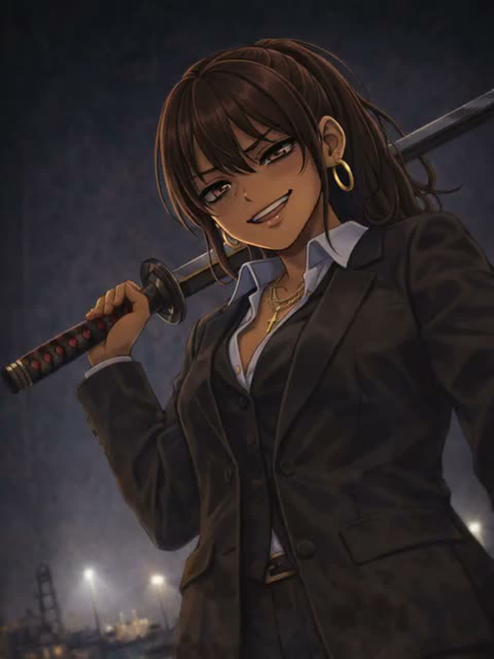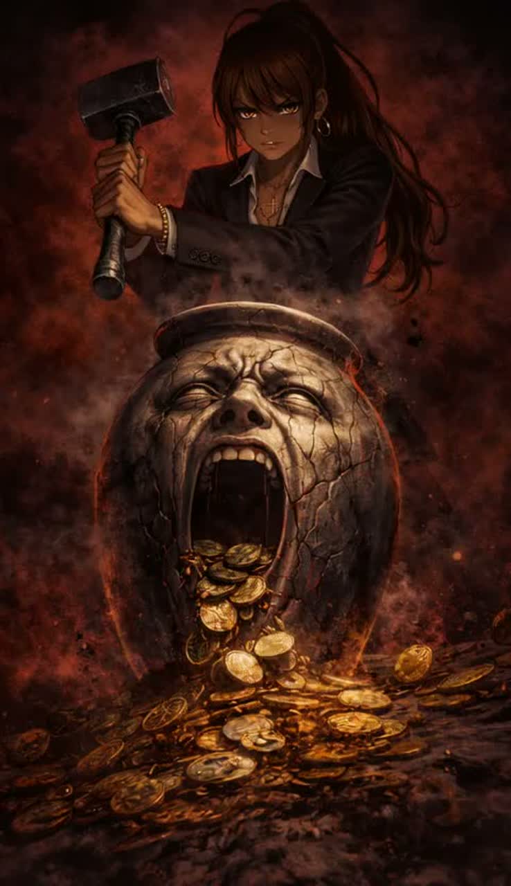 A dark tide rolls in, slow and heavy, like a crew chanting under a moonless sky, The beat sways with the rhythm of a ship cutting through rough water, drums and bass moving like muscle and rope, A female Japanese voice leads the charge, sharp and grounded in the verses, riding the groove with calm defiance, The hooks open up suddenly—melody surging like a shout across the deck, strings rising, guitars pressing forward without drowning the beat, Scratches flicker like sparks from steel, The world feels unjust, crooked, ruled from the shadows, and the song stares back without fear, mocking power with irony and resolve, It’s not bright, not mechanical—salt, wood, breath, and anger carried by the sea, repeating until the final echo fades into the dark water