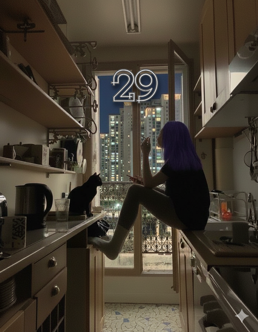 A lo-fi hip-hop track with a melancholic and introspective mood, The instrumentation features a simple, repetitive piano melody, a subtle bassline, and a laid-back drum beat with prominent hi-hats, A female vocalist delivers spoken-word style rap in Korean, characterized by a calm, almost whispered tone, The production includes a warm, slightly distorted lo-fi filter over the entire track, giving it a vintage feel, There are occasional vocal ad-libs, including sighs and humming, adding to the emotional depth, The song structure is verse-based with a recurring instrumental break that acts as a chorus, The tempo is slow, around 70-80 BPM, and the key appears to be minor, contributing to the somber atmosphere, The mixing emphasizes the vocals, placing them clearly in the foreground, while the instruments provide a soft, atmospheric backing