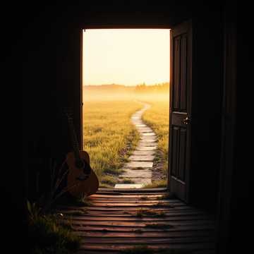 A sweet heartfelt acoustics american folk, Rich acoustic guitar fingerpicking leads, accented by warm, brushed drums and delicate handclaps, set a heartfelt folk atmosphere, Subtle layers of light strings swell beneath verses, with hushed group harmonies widening the chorus, A male voice—raspy, expressive, intimate—narrates the melody, The bridge strips back to guitar and soft ambient textures, inviting reflection before the final chorus blooms with organic percussion and layered harmonies for a nostalgic, spiritual closure, Gentle electronic folk elements join for subtle modern depth without overwhelming the organic heart