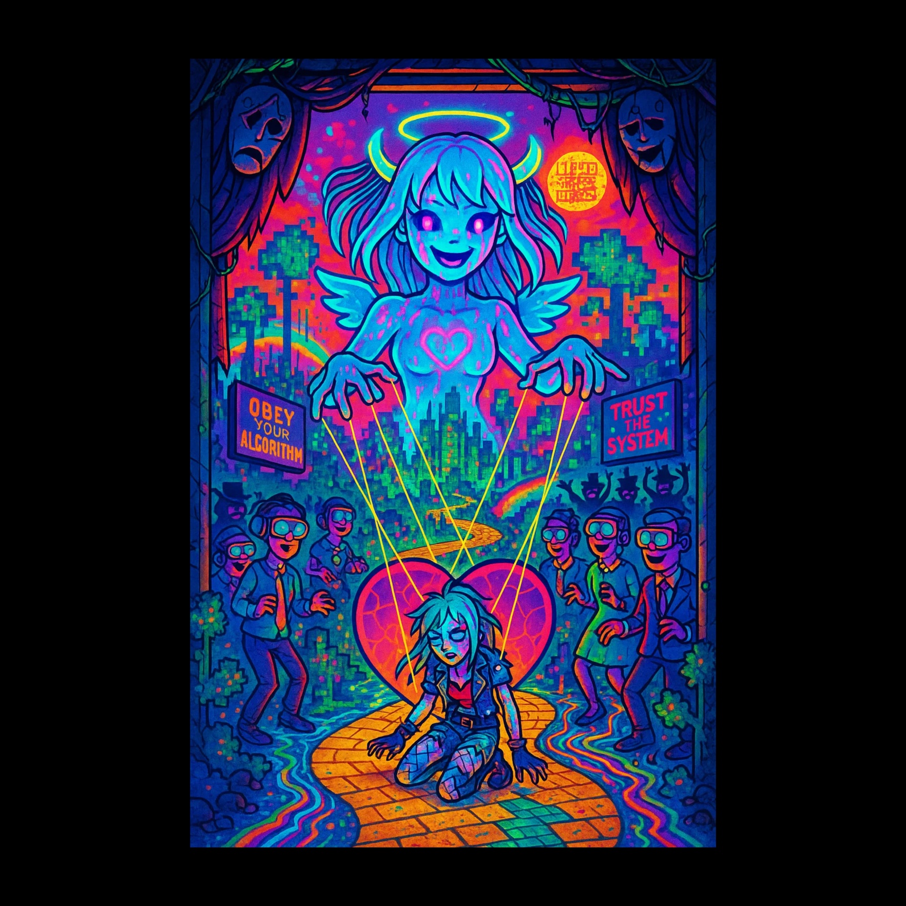 Ominous Industrial Metal, Dark Ambient, Cyberpunk, funk rock, R&b, 80's, new jack swing, nu-funk, disco, female ephemeral vocals, city pop, math rock, new jack swing, melodic, progressive, Focus on expressive lead guitar as the central voice, with a smooth, saturated tone — bright, fluid, and sustain-rich, The guitar should sing with lyrical phrasing, combining legato runs, melodic hooks, wide bends, pinch harmonics, and tapping, Include dynamic shifts between slow, emotional leads and faster, technical sections with rapid alternate picking, whammy bar phrasing, and modal explorations, The rhythm section supports with tight, grooving drums and warm, melodic bass lines that lock in beneath the soloing, Backing layers can include ambient synth pads or soft guitar harmonies to enhance atmosphere, The structure should feel like a cinematic journey — building through tension, melody, and resolution without vocals