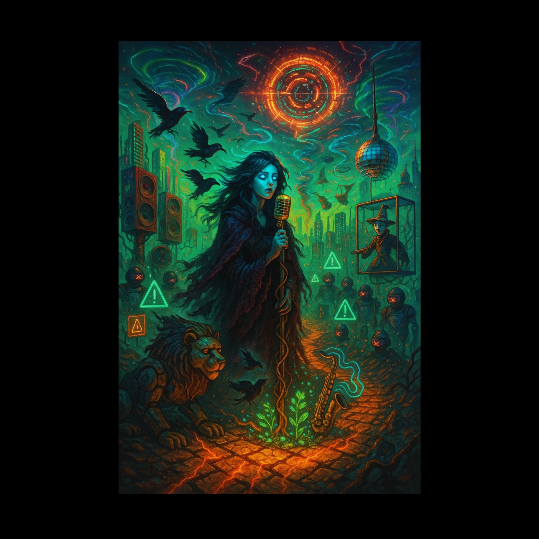 Pop Stage & Screen, female vocals, keyboards, drums, percussion, guitars, electric bass, arrangements, tribal rhythm, emotional, jack Swing, House, Techno, 90’s Funk, big band, swing, classic jazz, Rockabilly, blues rock, fiddles, smooth vocals, layered harmonies, immersive, folk, roots rock, swamp rock, Celtic Folk, High-energy tavern jig, smooth vocals, layered harmonies, distorted vocals, horror, sassy, dark swing vibe, swing dance, funny, house, electronic music, rap, with positive vibes, synthesizers, Metal, jackhammer guitar riff, pummeling drums, neoclassical, mechanical voice, 3 voices slow ritualistic rhythm, heavy metal, male vocals, aggressive vocals