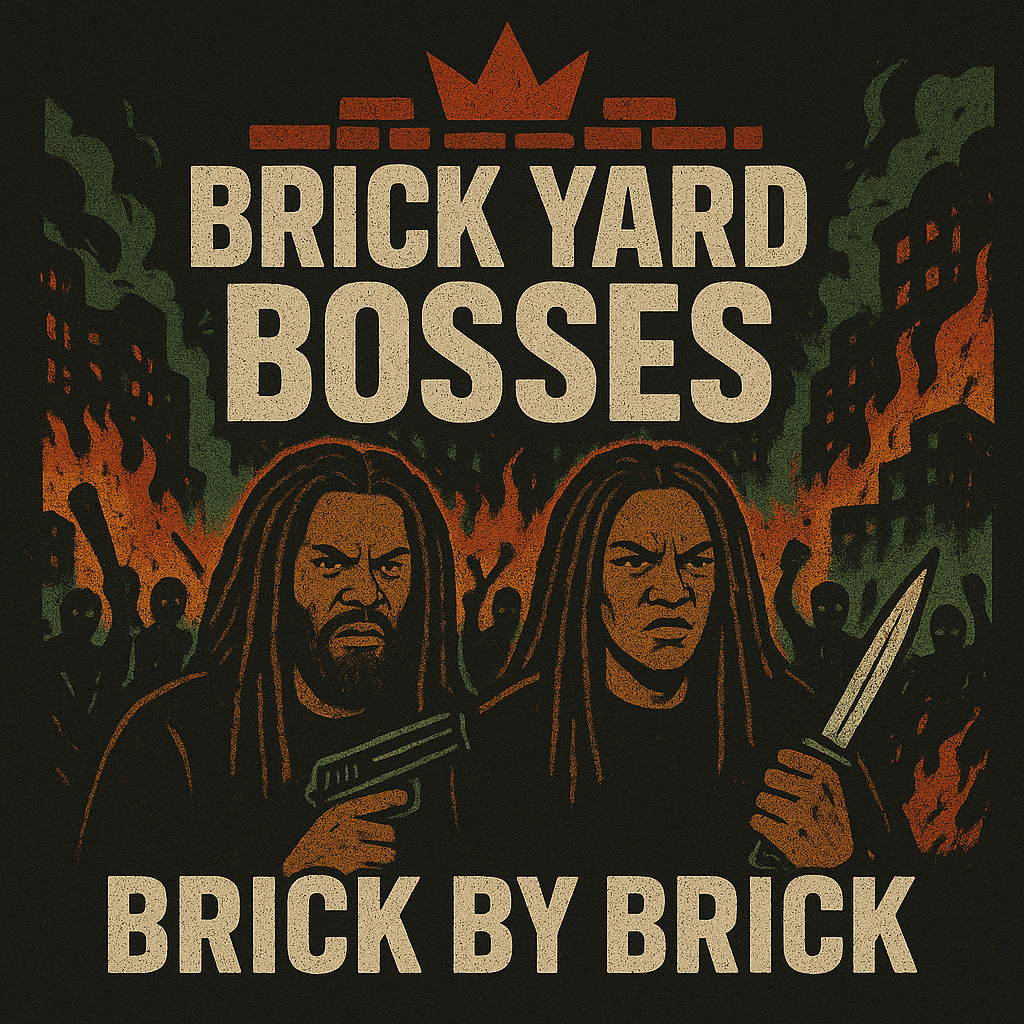High-energy dancehall track with rugged, commanding patois vocals, Drums are punchy and organic, with strong kick and snare hits, accented by shakers and rimshots to drive a twerk-friendly groove, Bass is deep and rolling, giving the floor-shaking energy without overwhelming, Atmosphere is club-packed, smoky, and lively, evoking late-night street vibes and gyal dem fully mashing the dancefloor, Vocals delivered thick and charismatic, with chant-style hooks, ad-libs, and call-and-response energy, Mood: hyped, celebratory, and gritty, showing Brick Yard Bosses watching and controlling the party while gyal dem dominate the floor