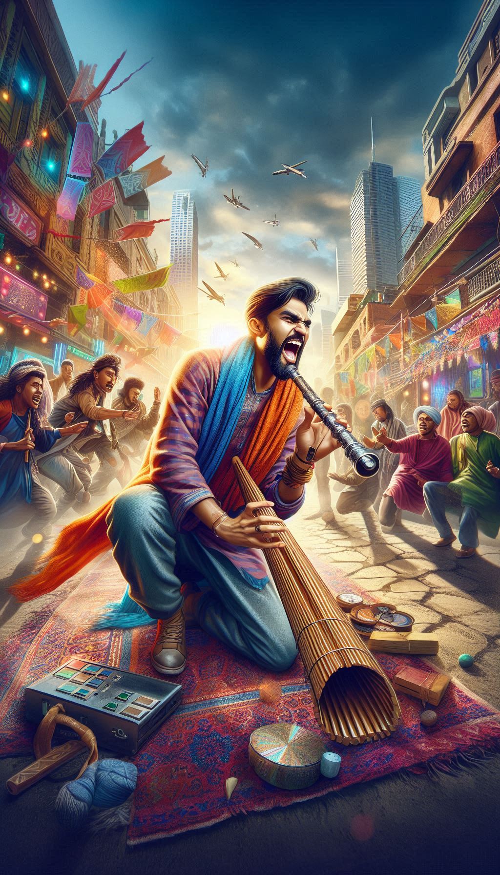 - Soprano kazoo plays the "arguing woman" role (high, sassy melodic phrases)