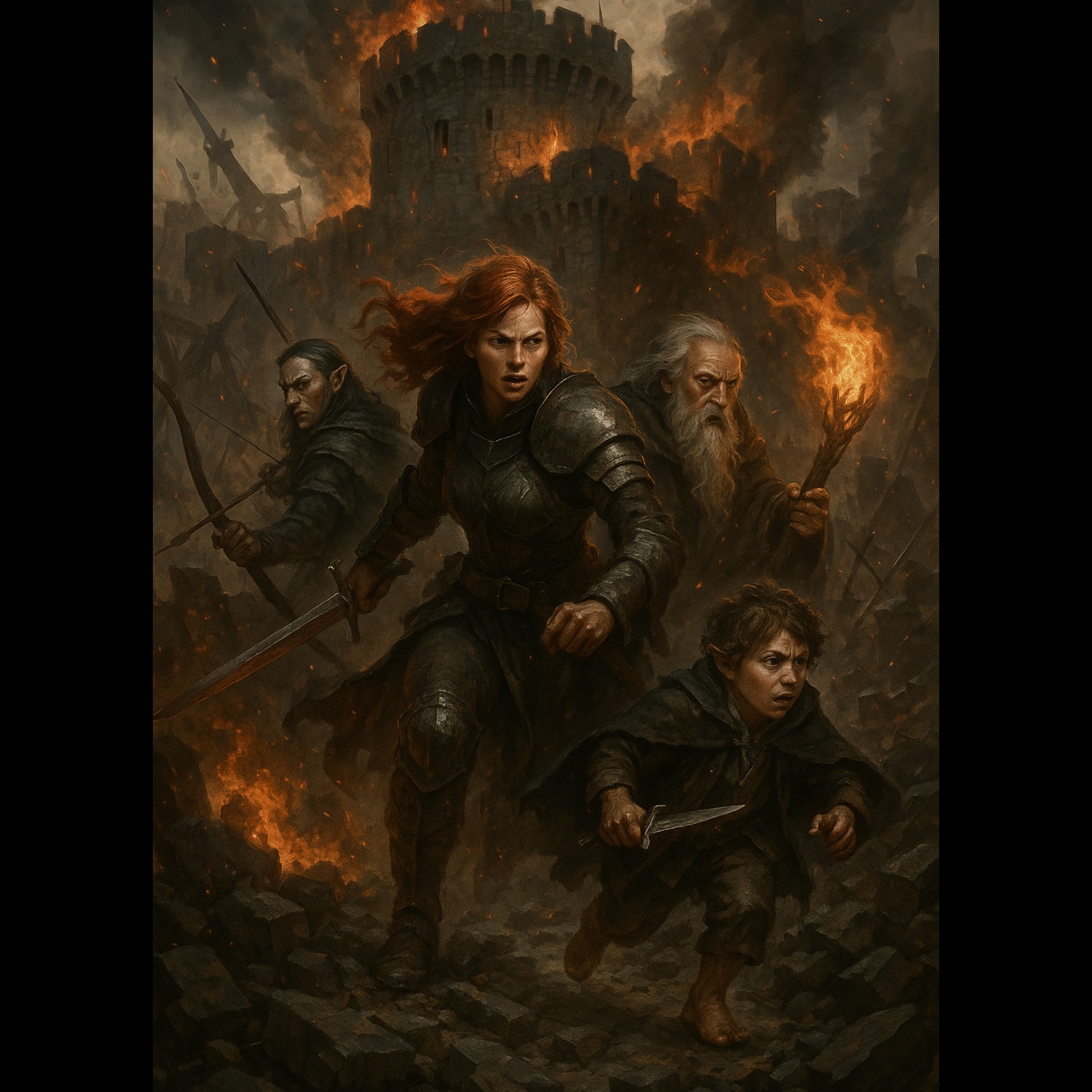 Relentless medieval battle music opens with thunderous war and frame drums, underscoring an urgent tempo, Zanfona and hurdy-gurdy drive gritty drones, while salterio, lute, and rebec weave tense motifs amid low medieval strings, Fire and metal clash accents enhance a cinematic, immersive castle siege mood, ‑rock, ‑pop, ‑metal